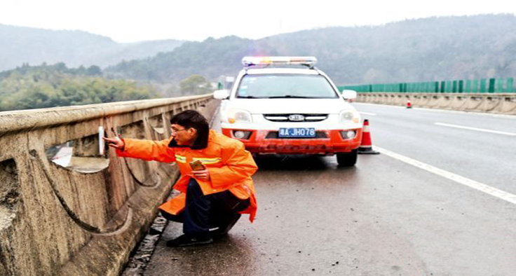 12月29日,高速公路懷化管理處養(yǎng)護(hù)人員在G65舞水大橋查看橋梁溫度,確保車輛安全通行。(本報記者 潘雨 通訊員 曹莉 攝)