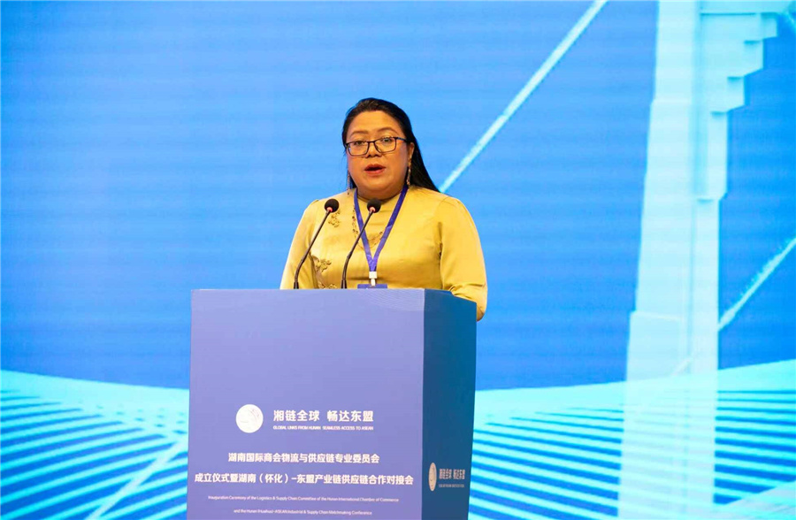 凱素林在致辭中說,懷化是東盟產(chǎn)品進(jìn)入中國中部市場的重要物流樞紐,東盟與懷化在提升物流與供應(yīng)鏈合作方面潛力巨大。懷化國際陸港是連接懷化與緬甸皎漂港、仰光港的跨境快運(yùn)通道的組成部分,為緬甸與懷化進(jìn)行更多貿(mào)易往來提供了機(jī)會(huì)。本次對(duì)接會(huì)將為區(qū)域經(jīng)貿(mào)合作與產(chǎn)業(yè)鏈供應(yīng)鏈融合注入新動(dòng)力,搭建企業(yè)溝通協(xié)作平臺(tái),共同開創(chuàng)互利共贏的美好未來。歡迎更多中國投資者赴緬甸探索商機(jī),享受投資優(yōu)惠政策,在農(nóng)產(chǎn)品加工、綠色能源等方面尋求合作。