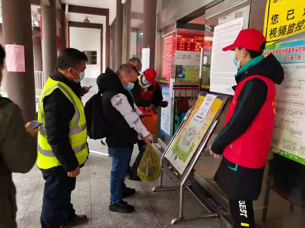 志愿者引導(dǎo)旅客出示“兩碼”