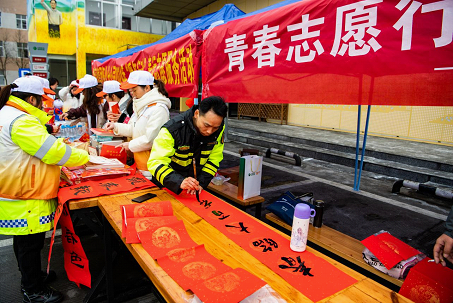 圖6“路燈”志愿者在寫春聯(田文國 圖)