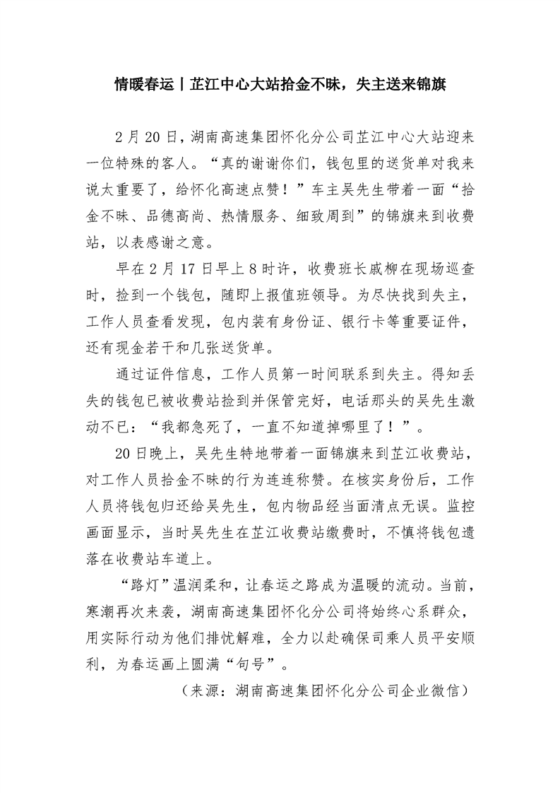 2024年懷化分公司春運(yùn)專(zhuān)報(bào)-第28期
