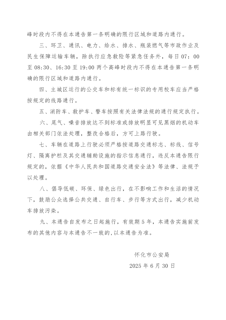 關(guān)于進一步優(yōu)化懷化市主城區(qū)道路車輛限行管理的通告